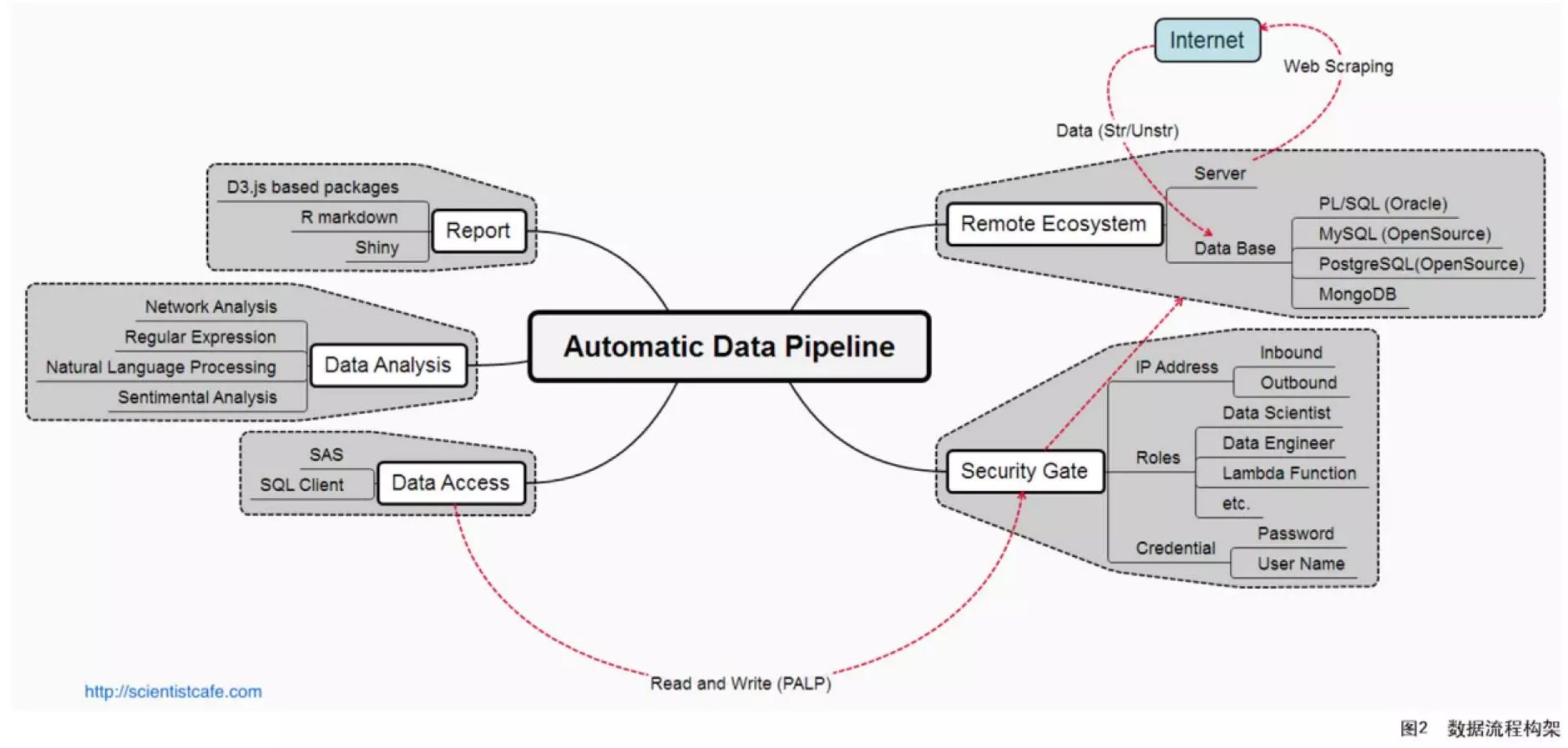 ? ? ? 數據科學家需要另外掌握的一個重要的技能是分析建模。圖2 是數據流程構架圖,這個模塊可以進一步細分成下面幾個:?