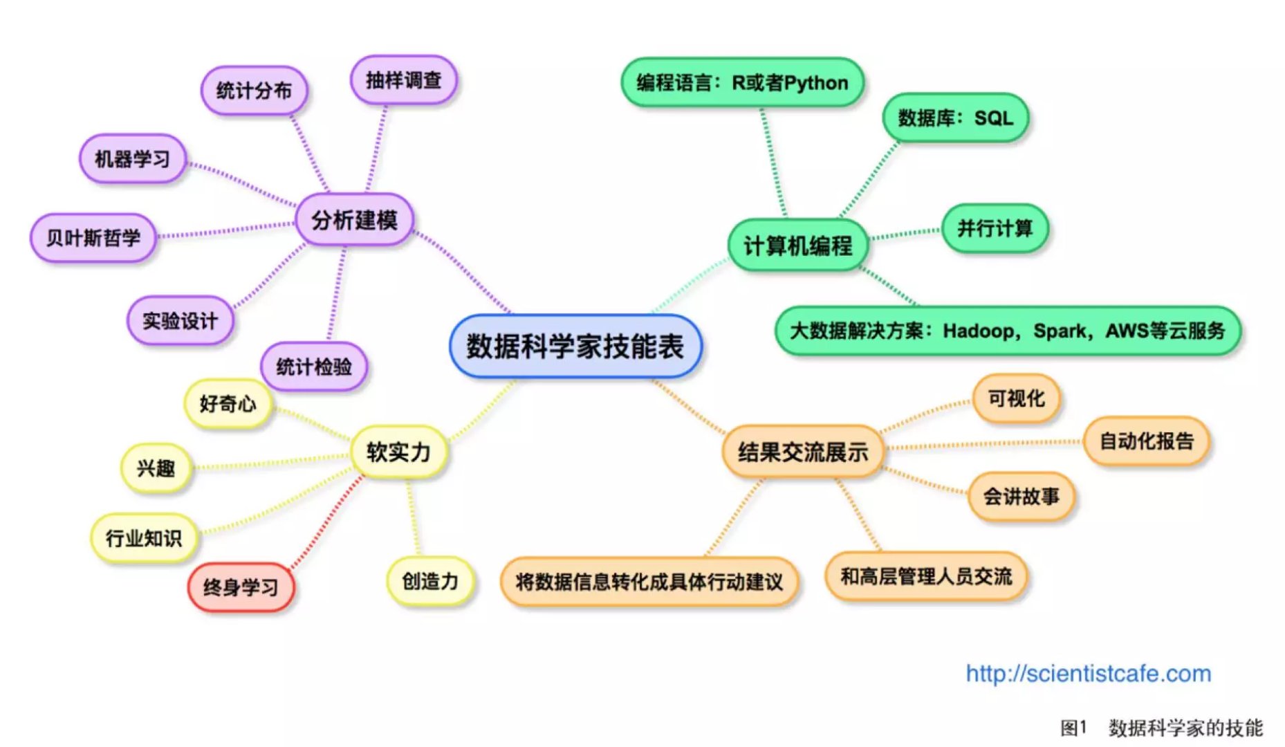 ? ? ? ?要回答“如何成為……”這樣的問題,首先當然需要知道想要成為的對象是個什么樣子。圖1 是一個數據科學家的技能表。