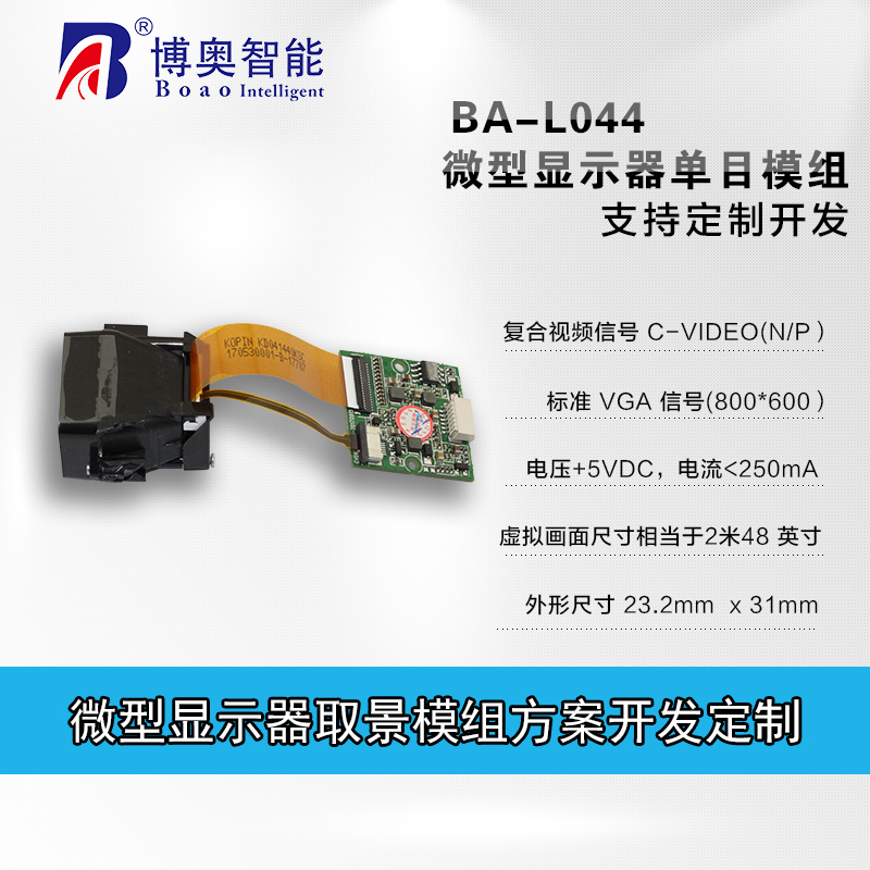 ? ? ? ?該顯示微型顯示器模組為減少客戶開發周期,降低客戶開發楊本應運而生,模組含1個SVGA像素的微? ?型顯示芯片、光源系統、高性能光學引擎、以及圖像驅動控制電路。該顯示模組可以虛擬出相當于2米? ?遠48英寸的畫面,圖像清晰800*600像素,體積小巧,可以方便地應用到客戶的產品開發設計中,該模? ?組主要設計應用到:軍用頭盔顯示器,軍用顯示器套件、便攜式夜視儀、醫療設備取景、紅外熱成像儀取景,激光瞄準器成像、單兵夜視系統、游戲頭盔、智能機器人取景、計算計成像、遠程教育、FPV眼鏡、AV/VR眼鏡等。