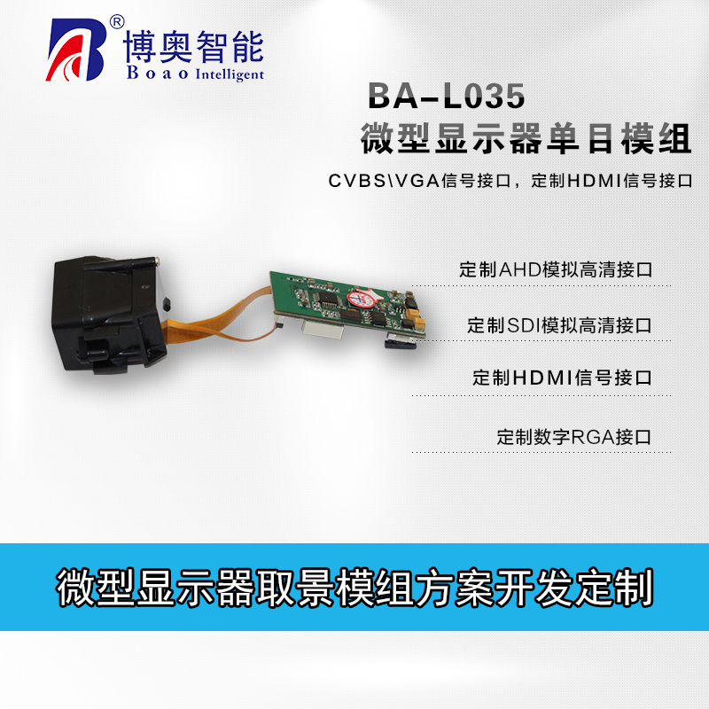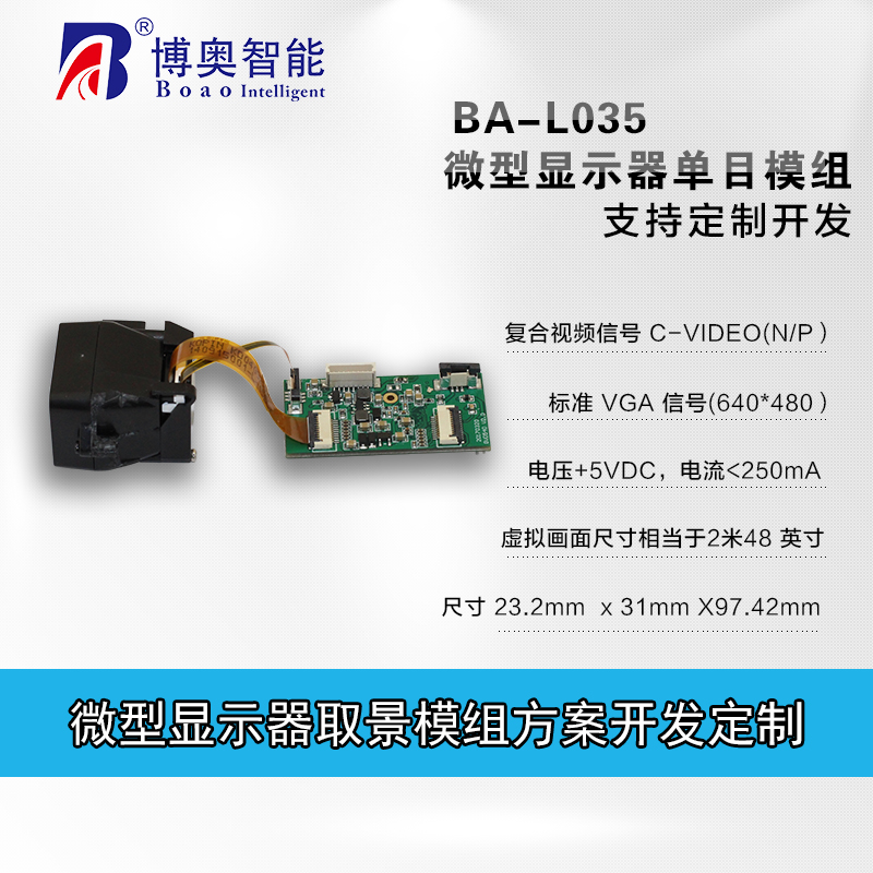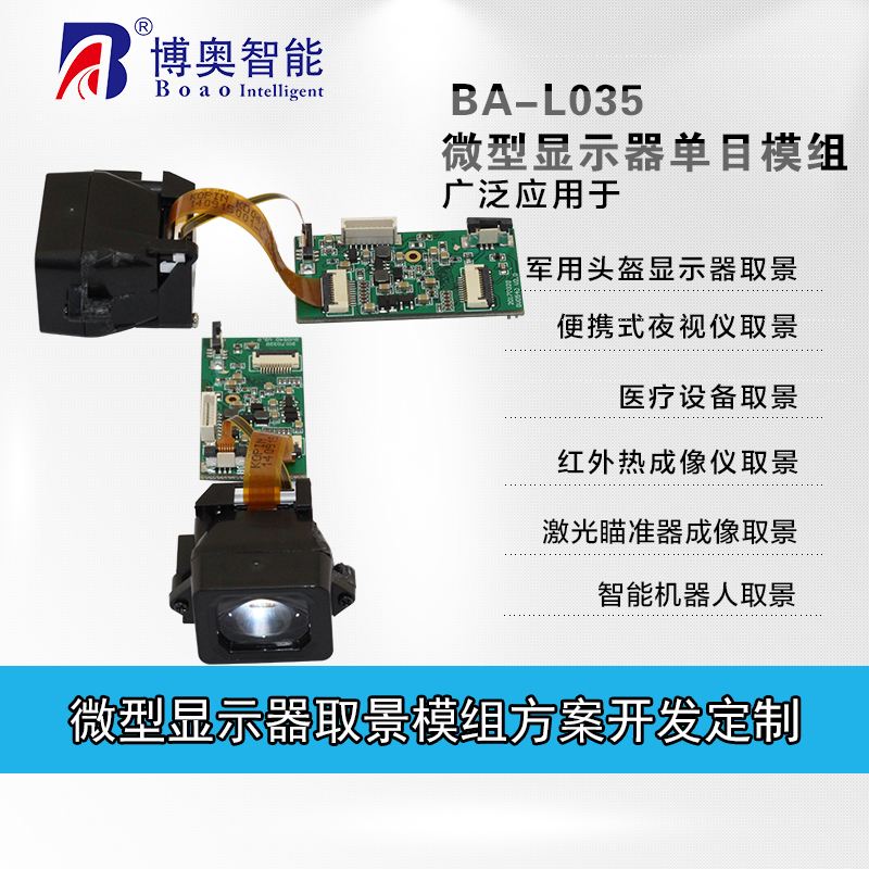 ? ? ? ?該顯示微型顯示器模組為減少客戶開發(fā)周期,降低客戶開發(fā)楊本應運而生,模組含1個SVGA像素的微型顯示芯片、光源系統(tǒng)、高性能光學引擎、以及圖像驅動控制電路。該顯示模組可以虛擬出相當于2米? ?遠48英寸的畫面,圖像清晰640*480像素,體積小巧,可以方便地應用到客戶的產品開發(fā)設計中,該模? ?組主要設計應用到:軍用頭盔顯示器,軍用顯示器套件、便攜式夜視儀、醫(yī)療設備取景、紅外熱成像儀取景,激光瞄準器成像、單兵夜視系統(tǒng)、游戲頭盔、智能機器人取景、計算計成像、遠程教育、FPV? ?眼鏡、AV/VR眼鏡等。