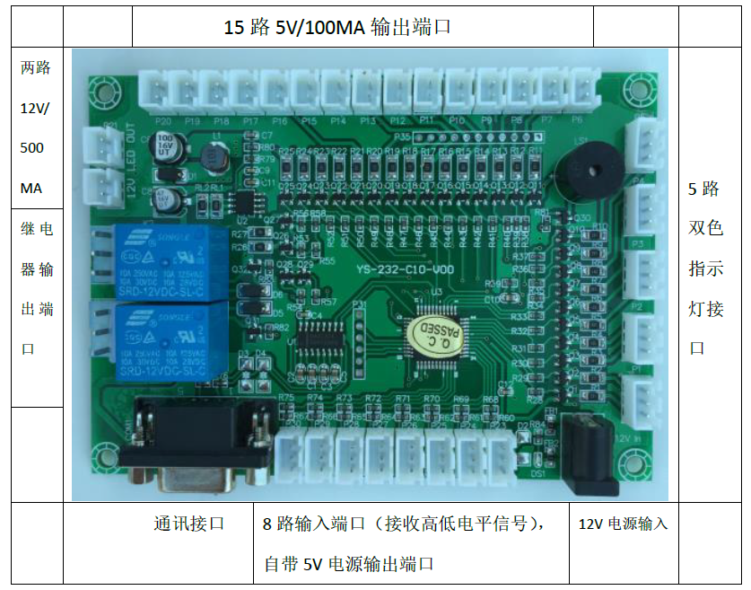 l 15路5V/100mA輸出,可控制各操作提示燈條;