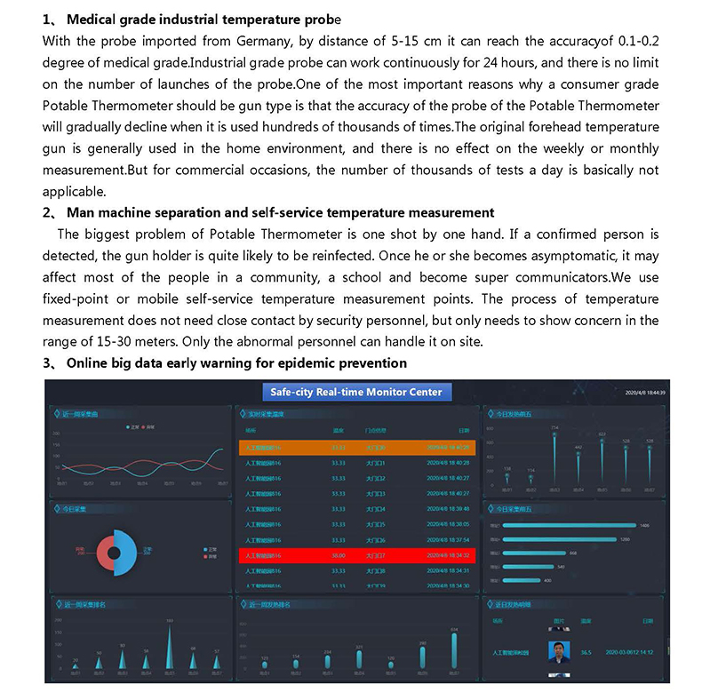 1. 采用醫學級工業測溫探頭,可以7*24小時不間斷測溫。