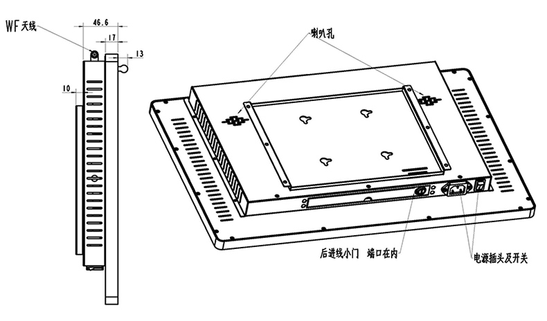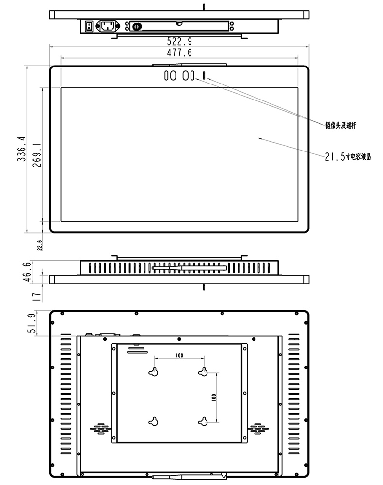 產品名稱:21.5寸壁掛式觸摸一體機 產品型號:BA-B215A