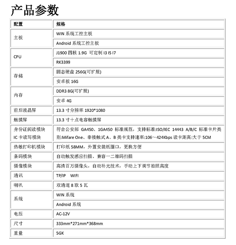 功 能:臉識(shí)別、身份證讀取、銀行卡讀取、醫(yī)療卡讀取、社保卡讀取、打印、二維條碼掃描