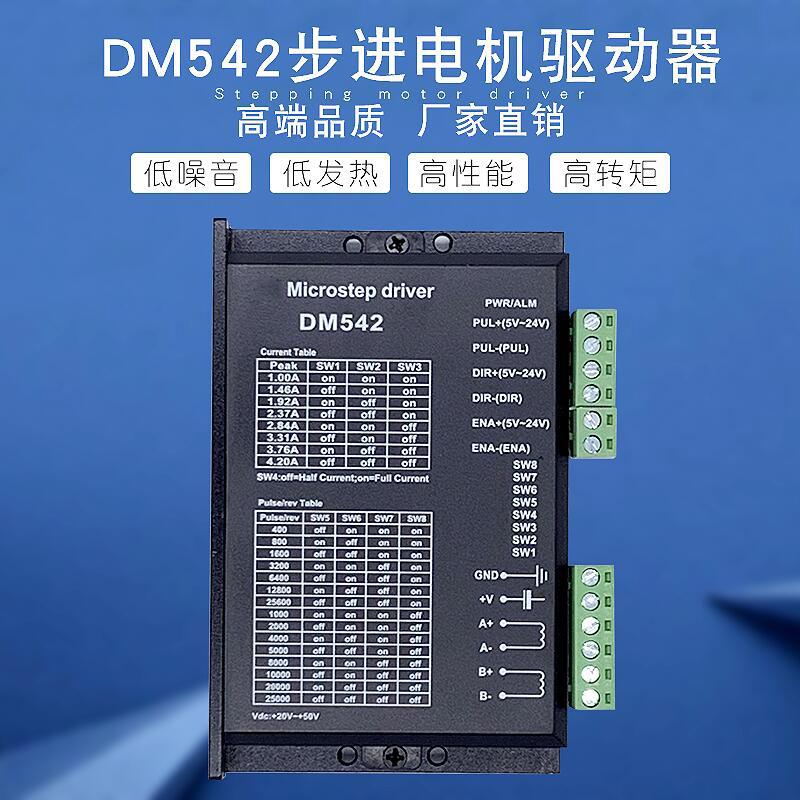 DM542是博奧智能針對市場需求開發的一款相混合式步進電機驅動器,從設計到加工經歷每個環節,面向客戶出售燒錄程序的主控芯片、主控板及外殼套料以及成品驅動器模塊;同時我公司根據客戶需求提供各種控制板及模塊定制。