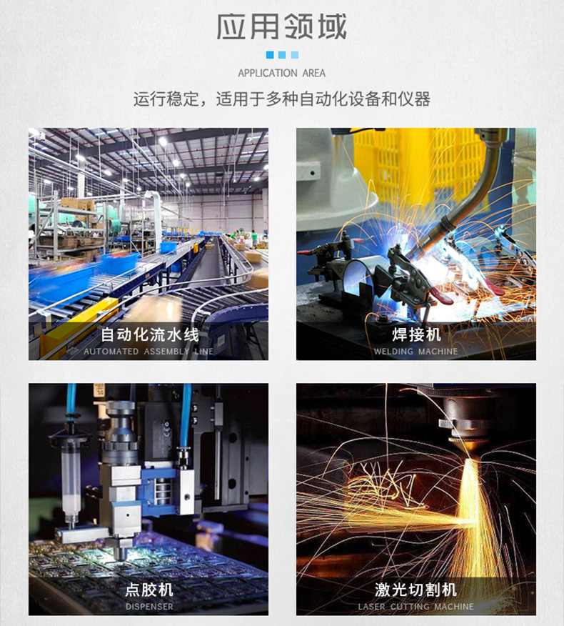 適合各種運動控制領域自動化設備和儀器,例如:自動包裝機、點膠機、3D 打印機、激光加工設備、雕刻設備、醫療設備、測量設備、電子加工設備、紡織服裝設備等。在用戶期望低振動、低噪聲的設備中應用,性價比競爭較強領域的首選。,