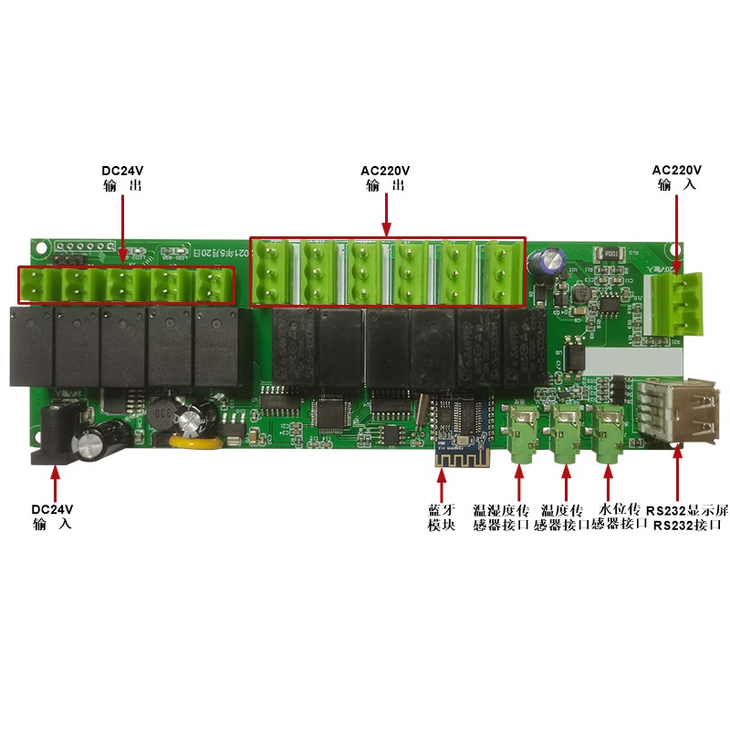 由博奧智能開發的多功能繼電器控制模塊可應用在農業大棚、養殖、園林造景、工業控制等行業;產品操作簡便,性能穩定,應用廣泛,主要經過藍牙通訊由手機小程序控制模塊的常開、常關、定時等功能,也可通RS232串口通訊本地控制!用于指定場景還可以測試溫濕度、溫度、水位等功能,此模塊免費提供開指令集及技術支持,同時提出售水位感應器、溫濕度感應器、溫度感器等配件。