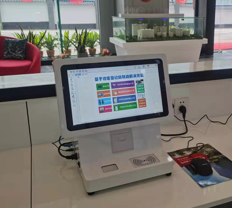 訪客機管理系統(tǒng)主要針對來訪人員進行信息化登記,相比傳統(tǒng)手工登記提高了工作效率,同時快將訪客信息以電子化形式保存,方便日后查詢,訪客機采用鈑金烤漆工藝外殼,集成15.6寸觸摸一體屏和11.6寸顯示屏,身份證閱讀器、打印機、高清攝像頭、條碼掃描等模塊