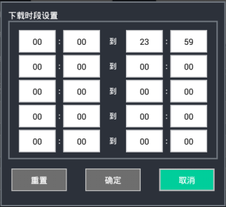 下載時段設(shè)置界面如下圖所示,最多可設(shè)置五個終端機的下載時段,00:00~00:00表示空配置項,00:00~23:59表示全天均可下載。終端機只有在配置的下載時段內(nèi)才會從服務(wù)器下載同步節(jié)目內(nèi)容;而配置、程序和系統(tǒng)包的下載不受下載時間限制。