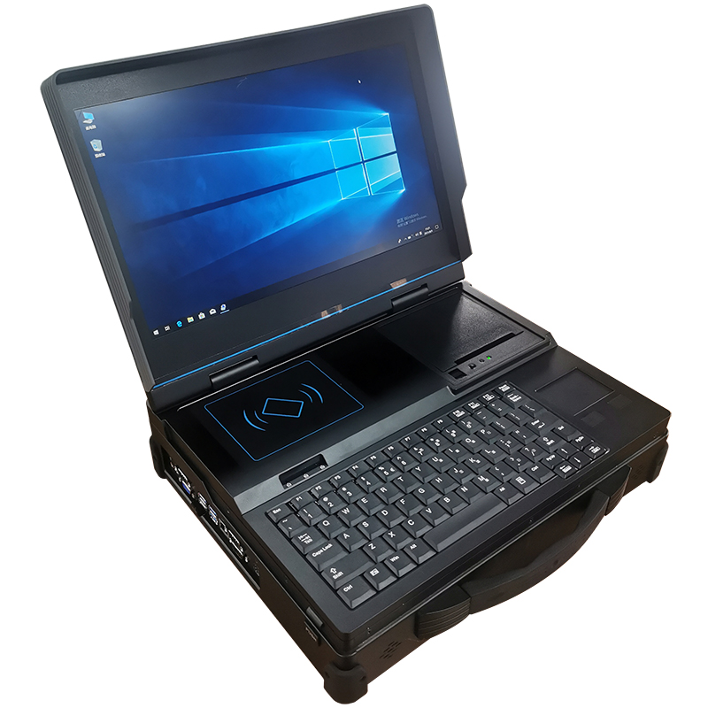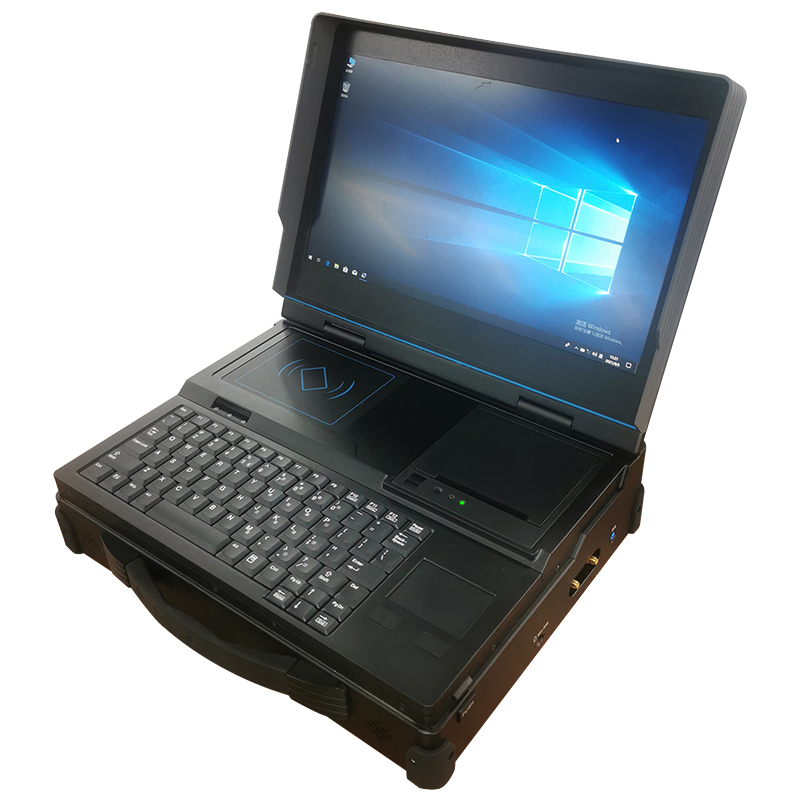 15.6寸便攜式工控計算機采用低能耗工業主板,4G內存256G固態硬盤,集成多功能讀卡器(身份證讀取 IC卡讀寫 銀行卡讀取)、80mm熱敏打印機、無線WIFI4G等功能;機殼采用高強度鋁鎂合金結構、表面采用防刮涂層處理,全方位的防震動橡膠墊和機箱內部結構之間的防震技術,使便攜式業電腦具有極強的抗震性能,能夠在較惡劣的環境下滿足客戶的各種程度的測試和工作需求;產品具有功能強大、性能穩定、操作簡單、便攜、加固、 輕便、擴展性強等特點;博奧智能可根據客戶需求定制開發各種非標便攜式筆記本電腦及整合各類功能模塊,定制包括功能、外觀、功能配置等服務。