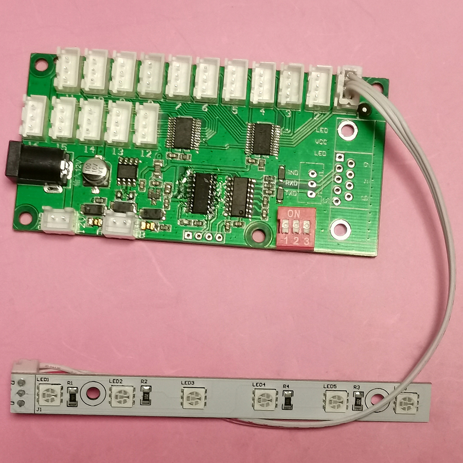 LED指標(biāo)燈控制板12V直流供電,采用RS485通訊,集成撥碼開(kāi)關(guān),板子單獨(dú)使用,也可經(jīng)過(guò)調(diào)節(jié)撥碼開(kāi)關(guān)多片板并聯(lián)使用,輸出32路接口,可接5V-12V之間的LED指示燈,控制板可應(yīng)用到貨架上指示貨架倉(cāng)位,用到終端機(jī)上面做為功能指示,用到生產(chǎn)流水線提示工作崗位等。