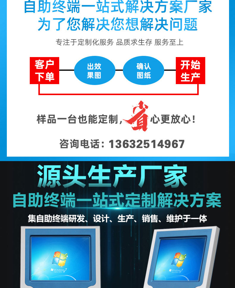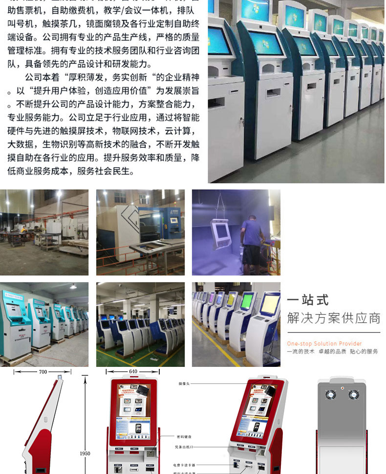 自助終端機定制:定制各種場景各種款式非標終端機;例如訪客機、景區(qū)自助取票機、醫(yī)院繳費查詢機、醫(yī)院自助取單機、社保查詢機、室內(nèi)外廣告機、排隊叫號機、工控一體機、電力繳費查詢機、圖書自助銷售機、便攜式計算機、酒店自助入住機、自助收銀機等終端。