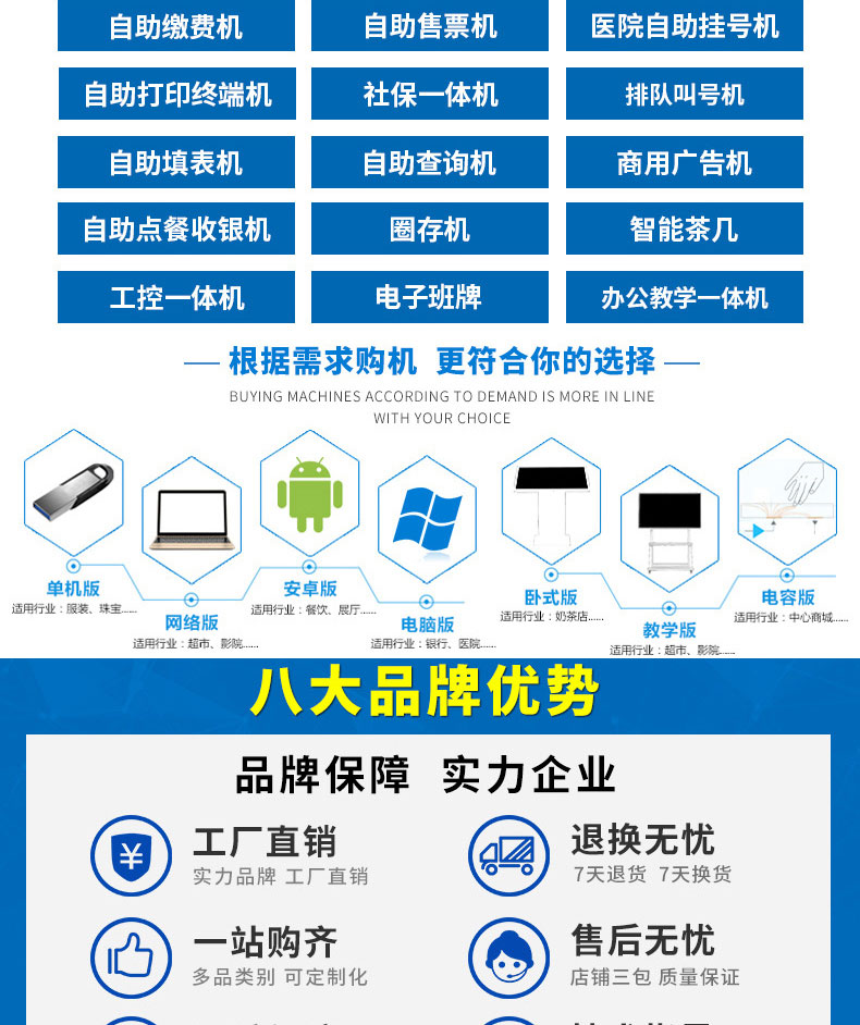 自助終端機(jī)定制:定制各種場(chǎng)景各種款式非標(biāo)終端機(jī);例如訪客機(jī)、景區(qū)自助取票機(jī)、醫(yī)院繳費(fèi)查詢機(jī)、醫(yī)院自助取單機(jī)、社保查詢機(jī)、室內(nèi)外廣告機(jī)、排隊(duì)叫號(hào)機(jī)、工控一體機(jī)、電力繳費(fèi)查詢機(jī)、圖書自助銷售機(jī)、便攜式計(jì)算機(jī)、酒店自助入住機(jī)、自助收銀機(jī)等終端。