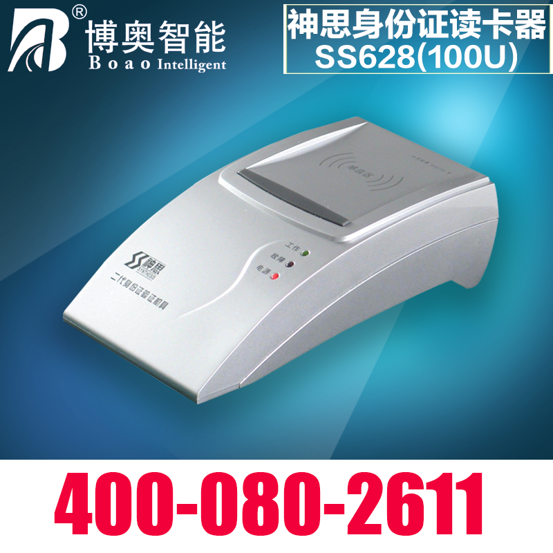 ? ? ? ? 神思SS628(100)身份證讀卡器,外觀精巧,兼容性強,安裝簡單,操作方便,廣泛適用于公安、銀行、保險、郵政、證券、酒店、電信等行業身份證信息的數據采集、錄入、核查比對。