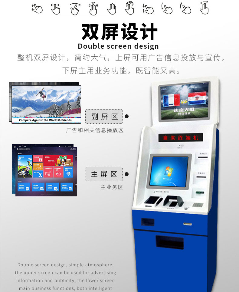 銀行政務醫院打印取單發卡多功能雙屏一體機智能自助終端應用系統軟件開發