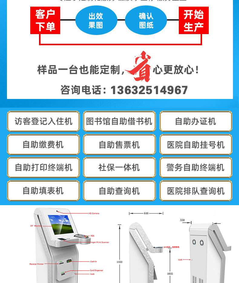 立式查詢排隊叫號觸摸一體機讀卡小票打印智能終端應用系統軟件開發