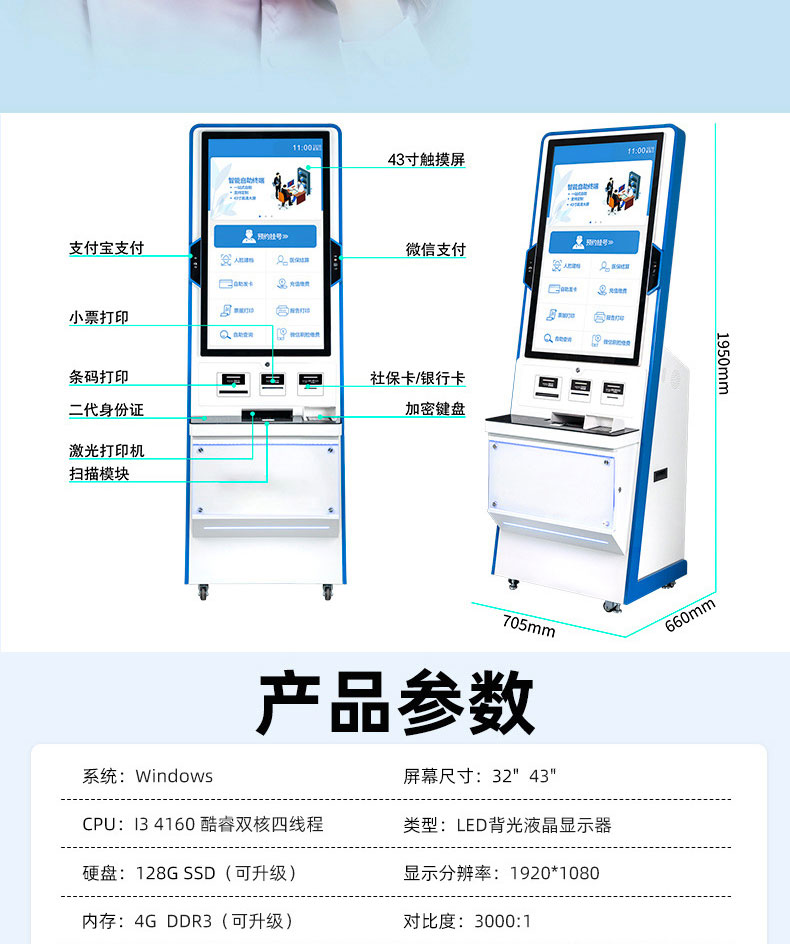 醫(yī)院銀行繳費系統(tǒng)政務(wù)查詢?nèi)四樧R別多功能一體機(jī)自助終端軟件開發(fā)