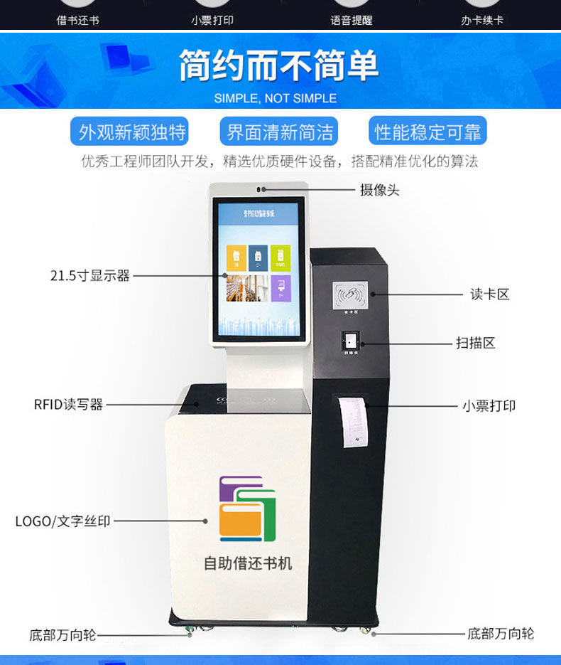 立式觸摸一體機自動圖書借還閱覽借閱辦證打印人證比對智能終端系統軟件開發