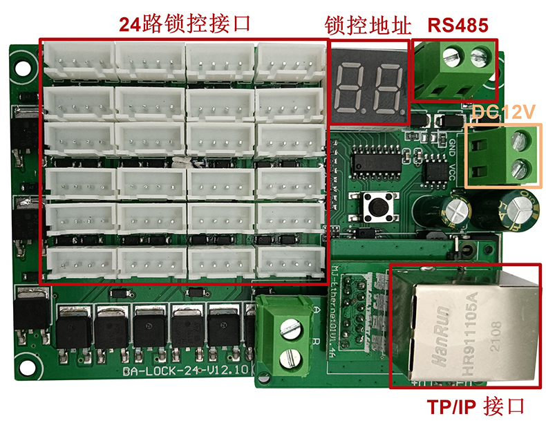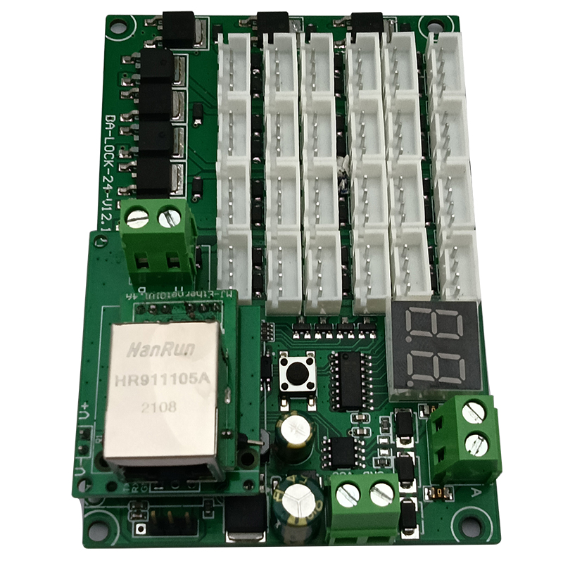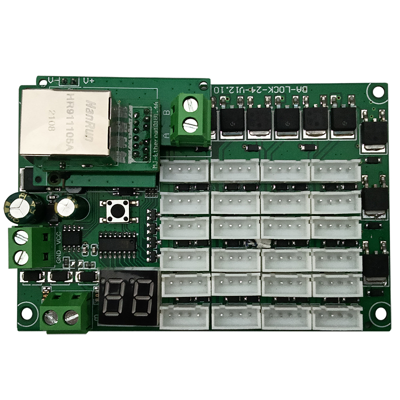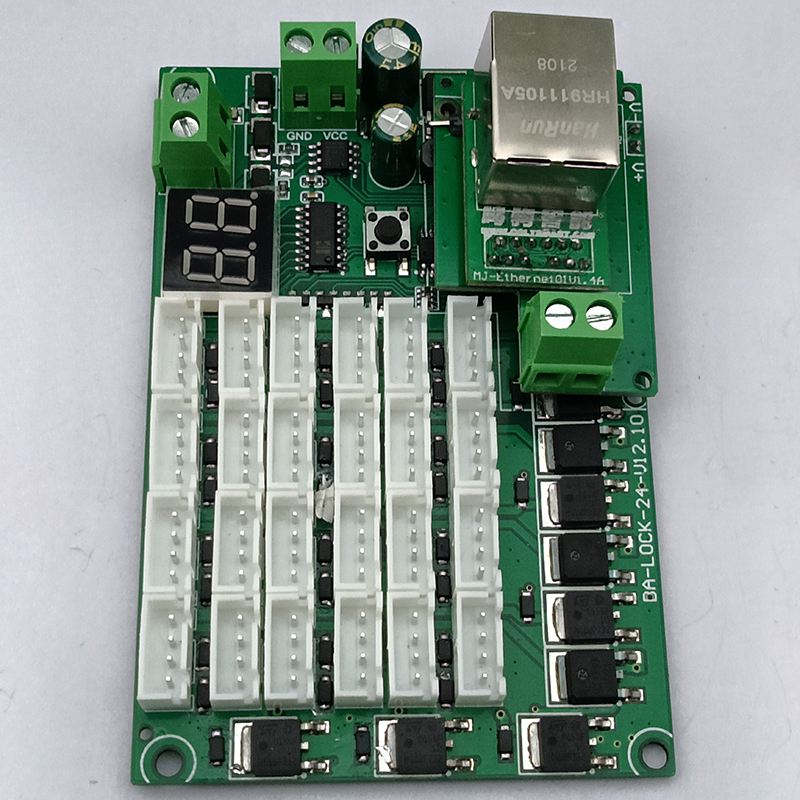 智能電子柜RJ45網口TP/IP協議485通信級聯24路鎖控板軟件APP開發PCBA方案定制