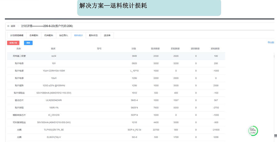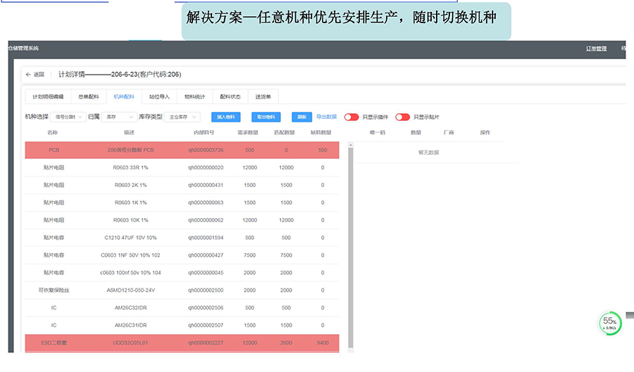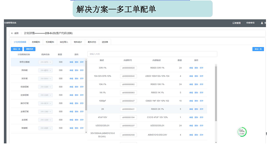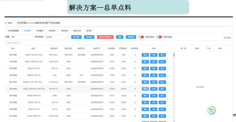 3.生成點料計劃,拿著物料檢索型號,自動點料、配料、標識插件貼片。