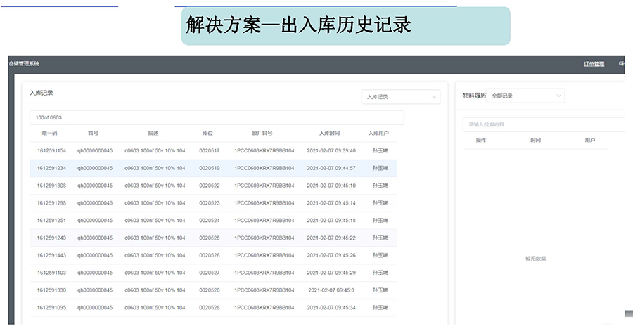1.來料自動生成料號和唯一碼,便于后續追蹤。