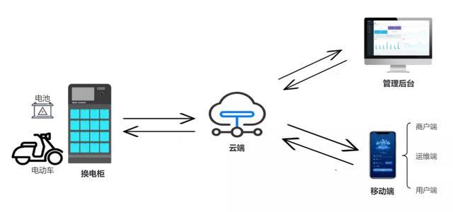 換電柜終端:用于電池存放和充電,每個格子儲存一塊電池;終端柜體上通常有一塊顯示屏,用戶可通過顯示屏了解當(dāng)前換電柜內(nèi)所有電池的電量、手機掃碼進行租用。