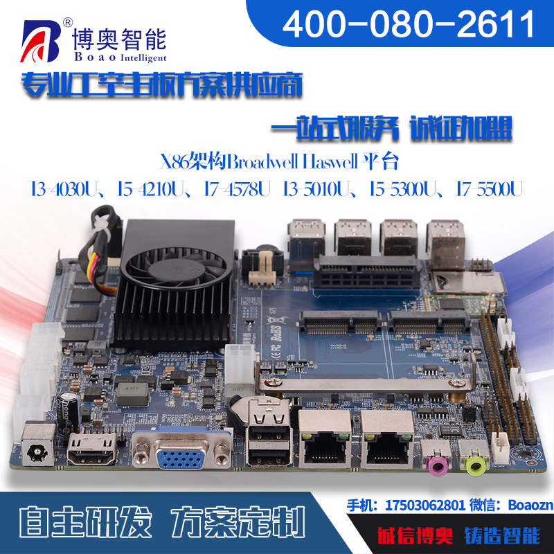 Intel Haswell和Intel Broadwell平臺主板是為我公司訪客機專用而且開發的工控主板方案,主板尺寸170mmX170mm,八層PCB板,工業級設計,它具有功能強大,集成度高,低功耗,高性能,多接口的特點,主板集成了12個USB接口 ,6個COM口,雙通大功率功放,最高支持15W,板貼4G/8G內存及WIFI+BT功能,雙插針LVDS1、LVDS2,同時主板配有兩路DC24V輸出,兩路DC12V輸出,一路DC5V輸出;?Intel Haswell和Intel Broadwell平臺提供板形(標準板卡、非標板卡)、功能接口等定制。