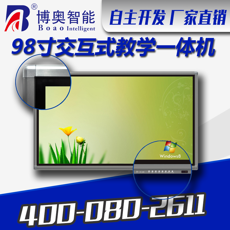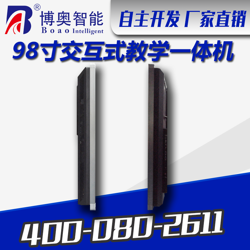 ? ? ?98寸交互式辦公教學(xué)一體機(jī)是由博奧智能自主開發(fā)生產(chǎn);采用鋁合金氧化拉絲工藝,將多點(diǎn)紅外鑰觸摸屏,LG原裝IPS 4K硬屏,高音質(zhì)喇叭、攝像頭工業(yè)控制主板集成為一臺(tái)交互式辦公教學(xué)一體機(jī),內(nèi)部安裝智能化辦公教學(xué)軟件,完全替代“投影+計(jì)算機(jī)+功放音響+電子講臺(tái)+電視機(jī)+高清視頻展臺(tái)(廣告機(jī))”等分體式傳統(tǒng)復(fù)雜辦公教學(xué)設(shè)備,,將傳統(tǒng)的顯示終端提升為功能全面的人機(jī)交互設(shè)備,設(shè)備性能穩(wěn)定,安裝方便,操作簡單;通過此產(chǎn)品用戶可以實(shí)現(xiàn)書寫、批注、繪畫、多媒體娛樂以及電腦操作,直接打開設(shè)備即可輕松演繹精彩的互動(dòng)平臺(tái);由于交互式辦公教學(xué)一體機(jī)方案技術(shù)是博奧智能自主開發(fā)開生,提供配置、功能、尺寸等要求進(jìn)行定制。