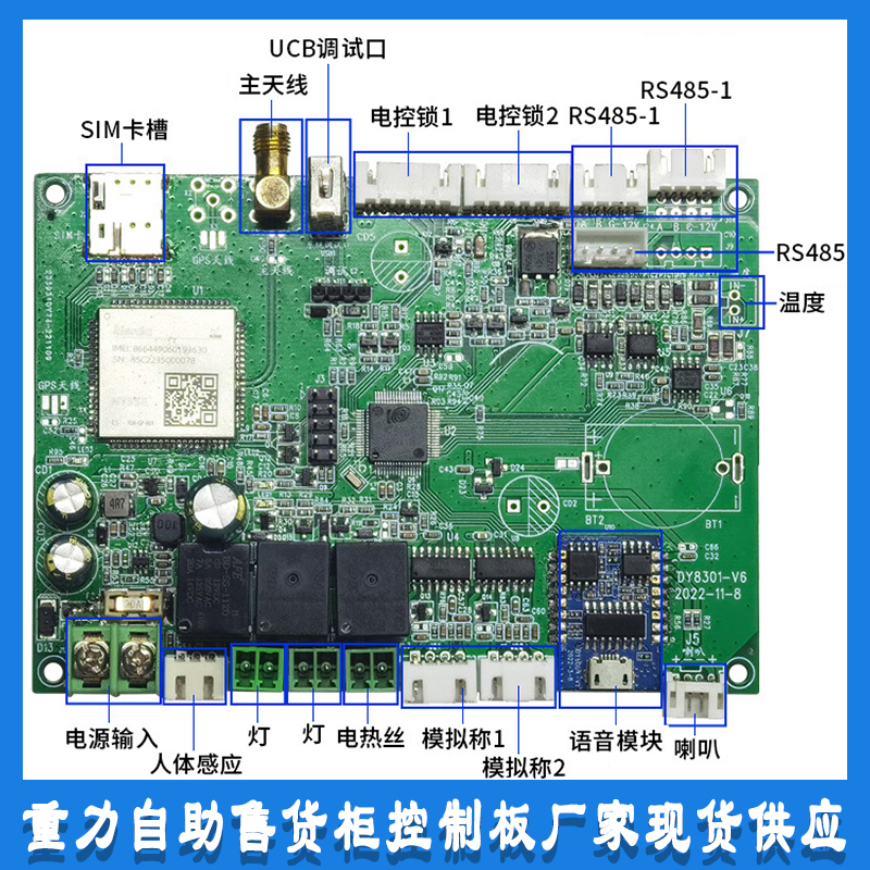 重力柜4G主控板人體感應(yīng)智能語音播報(bào)售貨機(jī)免費(fèi)提供開發(fā)指令集自助販賣機(jī)自動(dòng)稱重控制板套件按需定制 免費(fèi)開發(fā)工業(yè)控制 智能電器物聯(lián)家居主控PCBA方案硬件電路板
