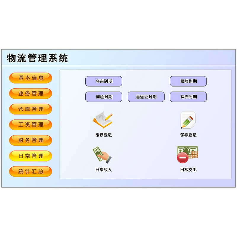 物流管理系統是一款針對貨運公司管理車輛信息開發的軟件。它致力于幫助物流公司更高效、便捷地管理各項業務,包括基本信息管理、業務管理、倉庫管理、工資管理、財務管理、日常管理和統計匯總等。該系統集成了豐富的功能,能夠滿足貨運公司在各個業務環節的需求,提升公司的運營效率。