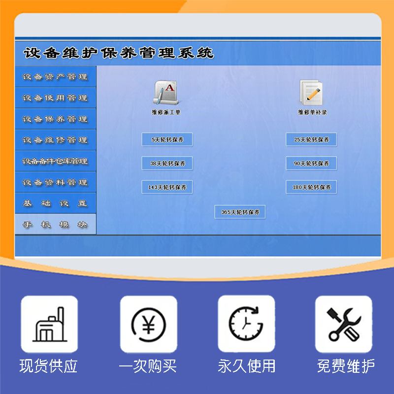 - 設(shè)備保養(yǎng)計(jì)劃:用戶(hù)可制定設(shè)備保養(yǎng)計(jì)劃,確保設(shè)備得到定期維護(hù)。