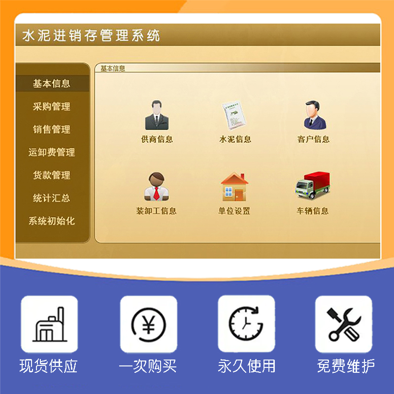 水泥進銷存管理系統現貨供應免費試用一次購買永久使用按需定制開發各行業應用軟件