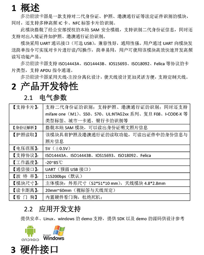 多功能讀卡器是一款支持對二代身份證、護(hù)照、港澳通行證等法定證件識別的模塊,同時,還支持多種高頻 IC 卡、NFC 標(biāo)簽卡片的識別。